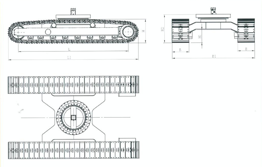 此款產(chǎn)品適用于大型挖機和打樁機, X形棟梁增大底盤的強度,增大承載力度,采用低速大扭矩內(nèi)藏式行走減速機驅(qū)動,外觀精致細巧??筛鶕?jù)客戶要求訂做。