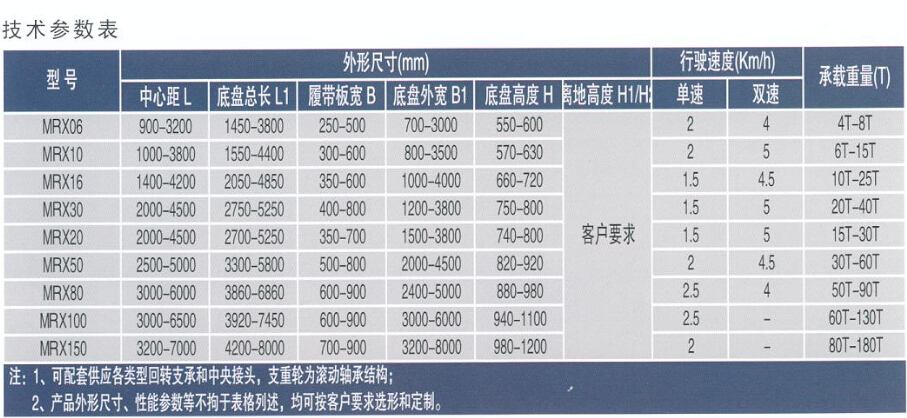 15噸帶回轉(zhuǎn)支撐的履帶的底盤性能參數(shù):承載總重:15噸,工作壓力:16MPA,行駛速度1-2公里每小時,接地比壓:0.089,爬坡度數(shù):20度。制動形式:機械制動加液壓鎖制動。回轉(zhuǎn)接頭:定配。